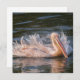 Ein majestätischer Pelikan schwimmt anmutig auf dem Wasser, seine schlanken Federn glitzern mit Tröpfchen, während es kräftig schüttelt von den Resten eines Tauchgangs vor kurzem. Der Kontrast zum schwarzen Hintergrund unterstreicht die Eleganz der Wassertropfen, die mitten in der Luft gefangen werden, und schafft so eine faszinierende Naturlandschaft in Bewegung.