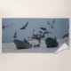 Pelikane um Fischerboote Strandtuch