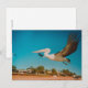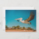 Ein Pelikan, der am Strand von Monkey Mia, Western Australien, fliegt.