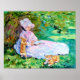 Dieses hübsche Bild stammt von meinem Original-Gemälde, das von Monets Werk inspiriert wurde. Zwei Corgi-Jungtiere genießen die Begleitung ihrer Herrin, während sie im Schatten der Bäume liest. www.corgiart.net und petart.net