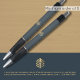 Erhöhen Sie Ihre Marke mit unserem Pen für kundenspezifische Unternehmen. Dieser elegante Stift zeichnet sich durch ein modernes, goldfarbenes abstraktes Logo aus, das mit Ihrem Branding und Unternehmensinformationen in zeitloser goldener klassischer Typografie auf einem schlichten grauen Hintergrund aktualisiert werden kann. Ob als Firmengeschenk oder für den täglichen Büroalltag - dieser Stift verströmt Professionalität und Eleganz.