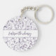Ein moderner, abstrakter Schlüsselanhänger in lila Stift-Strichen.