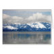 En regardant à l'est de Sandpoint, traversez le lac Pend Oreille (étang oh-ray) par un jour d'hiver; montagnes enneigées au loin. La glace s'est formée sur le rivage et s'étend à une partie du lac. Le blues et le gris sont les couleurs dominantes. Photo prise par l'artiste.