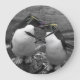 This striking black-and-white penguin portrait captures connection, loyalty, and personality — with just a touch of colour to make it unforgettable.