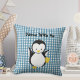 Penguin Dancing Blue Kariert Gingham Personalisier Kissen