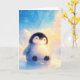 Ein flauschiger Pinguin sitzt glücklich in einer schneebedeckten Landschaft, gebadet im warmen Glühen eines goldenen Sonnenaufgangs. Seine winzigen schwarzen Flossen Erholung sanft auf den weichen Schnee, und seine runden Augen sehen nach oben mit einem friedlichen und inhaltlichen Ausdruck. Schneeflocken treiben durch die knusprige arktische Luft und schaffen ein traumhaftes Winterwunderland. Die Kulisse ist von sanften, leuchtenden Wolken geprägt, die sich nahtlos mit einem strahlenden blauen Himmel verbinden und der ganzen Szene ein magisches, ruhiges Ambiente verleihen. Diese bezaubernde Pinguin-Illustration erweckt einen herzerwärmenden Moment, perfekt für jeden, der den Winter, die Natur und das süße Tier Liebe.