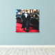 A penguin in a tuxedo exits a limousine onto a red carpet.