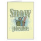Ein entzückender Skientwurf, der einen Penguin kennzeichnet, kleidete in der Wintertracht mit Skis und Text, der "Schnee bitte" auf Skikleider- und -geschenkeinzelteilen einschließlich Ski T - Shirts, Tassen, Karten, Aufkleber, Taschentaschen, Verzierungen, Plakate liest, und viel mehr an.