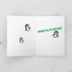 Weihnachtskarte mit einer niedlichen Kolonie von Cartoon Pinguinen mit einem Weihnachtsbaum und Geschenke.