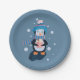 Penguin with Hot Cocoa Blue Holiday Paper Plate Pappteller