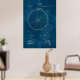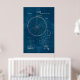 Eine alte Erfindung eines Penny Farthing Bicycle, patentiert 1887, entworfen für Wandkunst auf Blauhintergrund.