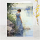 Cette carte d'art évocatrice présente une scène d'aquarelle poignante d'une jeune femme en robe bleu clair, debout au bord d'un lac, regardant attentivement en bas. Le style d'aquarelle douce exprime magnifiquement l'humeur tranquille et introspective, qui laisse présager une douceur ou une solitude douces. Cette carte est adaptée pour envoyer un message de compréhension tranquille, pour des moments de réflexion, ou pour toute personne qui apprécie l'art qui touche à des moments humains sereins et émotionnels.