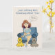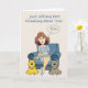 Pensez à vous carte de voeux avec une femme assise dans une chaise avec deux chiens par elle et une bulle de pensée qui dit VOUS dedans! Cette carte peut faire la journée de n'importe qui !