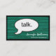 Ces Cartes de visite Turquoises "Parlez" modernes et professionnels sont un choix carte de visite unique et cool pour un psychologue, un psychiatre, un conseiller ou toute autre entreprise axée sur la parole ou la thérapie. Cette carte est vraiment attrayante pour les yeux ; soyez remarqué et rappelez-vous.