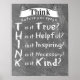 Réfléchis avant de parler ! Idéal pour les enseignants et les classes de rappeler aux enfants de penser. T- est-ce vrai ? H - Est-ce utile ? I - est-ce inspirant? N - Est-ce nécessaire ? K - Est-ce un peu comme ça ?