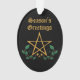 Célébrez la saison avec cet enchanteur ornement de Noël ovale, avec une étonnante étoile sorcière et une décoration feuillue dressée contre un riche arrière - plan noir. Les mots "Bonnes Fêtes" s'affichent élégamment au-dessus du design, mêlant parfaitement esprit festif et esprit païen et wiccan. Idéal pour les amateurs d'esthétique mystique et d'inspiration nature, cet ornement ajoute une touche de magie à tout décor de vacances. Que ce soit pour vous-même ou comme cadeau de Noël réfléchi, cette pièce unique est parfaite pour tous ceux qui cherchent à apporter un peu de charme sorcier à leurs célébrations.