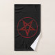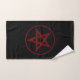 Pentagramme rouge, inversé, texturé en cercle, sur arrière - plan noir. Symbole occulte 666