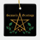 Das Keramik-Ornament der Jahreszeit - eine zauberhafte Ergänzung zu Ihrem Urlaubssaal, die Zauber und Wunder ausstrahlt! Können Sie sich vorstellen, dass das weiche Glühen Ihrer bunten Lichter von der polierten Oberfläche reflektiert wird? Dieses wunderschön gestaltete quadratische Ornament mit den Begrüßungen der Jahreszeit in einem eleganten, schwarzen Schriftart zeichne sofort das Auge; es ist eine visuelle Sinfonie von altem Charme und modernem Mystik. Dieses mit einem mystischen Stern und zarten dekorativen Elementen von Blätter und roten Beeren verzierte Ornament strahlt eine zauberhafte, heidnische Atmosphäre aus und ist somit ein idealer Schatz für diejenigen, die Wicca oder heidnische Traditionen feiern. Jeder Blick auf dieses Stück ruft ein Gefühl zeitlosen Zaubers hervor, ein Flüstern alter Rituale und die warme Umarmung des Judenjubels. Stellen Sie sich die Freude vor, dieses bezaubernde Ornament jemandem zu schenken, der den Zauber der Saison liebt - es ist mehr als nur eine Dekoration; es ist ein nachdenklicher Beweis für Liebe und Verbindung. Feiern Sie Ihren Urlaub mit einer perfekten Mischung aus Tradition, Magie und Eleganz. Mit diesem einzigartigen Ornament der Saison verzaubern Sie den besonderen Charme der Saison und ließ es, seine zauberhafte Schönheit in Ihre Festlichkeiten zu weben.