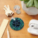 Dieser skurrile Schlüsselanhänger zeichnet sich durch einen lebendigen Aquarelldruck eines Pentagramms aus, umgeben von einem kosmischen Sternenhimmel.