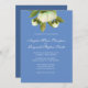 Bouquet de pivoines blanches avec feuilles vert vif, peint et détaillé. Jardin, botanique, imprimé nature. avec couleur arrière - plan bleue, provence couleur pantone 16-4032 ou hexadécimal 638cc7. Hex #3f6191, Design entièrement modifiable.