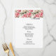 Menükarte wird mit einem Kunstdruck von hübschen Blume aus Rosa und Weiß, die oben auf der Karte hervorgehoben sind und auf dem weißen Kartenpapier gezeigt werden. Skript und Standardtext in schwarzer Farbe. Passen Sie die Menüelemente an, indem Sie auf die Schaltfläche Bearbeiten klicken, suchen Sie nach rechts und suchen Sie geeignete Felder, um Ihre Informationen zu ändern. Wir wünschen Ihnen viel Spaß beim Hochzeitsfest.