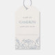 Dieses elegante, blumengeschmückte Brautparty-Design ist perfekt für den Frühling oder den Sommer geeignet und zeichnet sich durch die Kontur von staubblauen Blume aus. Personalisieren Sie diese Dusch-Tags mit dem Ehrengast. Platz für die Namen der Gäste. Fügen Sie in jeder Einladung ein Etikett mit Ihrer "Display Dusche" unverpackten Geschenkanfrage ein.