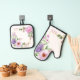 Peony Hebrew Name Oven Mitt + Pot Holder Set
