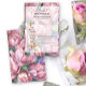 Vintager Retrostil in Aquarellfarbe Rosa Blume Thema Brautparty-Karte mit Aquarellbildern von Bouquet-Pionieren mit Grün. Elegante Kalligraphie-Handschrift, ideal für Frühjahr-, Sommer- oder Herbsthochzeiten.