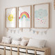 Ce jeu d'imprimés doux présente mon arc-en-ciel dessiné à la main, le soleil et les nuages.