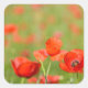 Photo autocollant de fleurs de pavot rouge vibrantes dans un champ vert plein de pavots. Il a une forte émotion de bonheur, printemps et été.