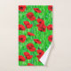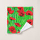 Serviette sertie dans un motif d'aquarelle semi-abstrait de pavots rouges dans un champ, contre les tiges vertes et les feuilles