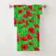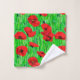 Serviette sertie dans un motif d'aquarelle semi-abstrait de pavots rouges dans un champ, contre les tiges vertes et les feuilles