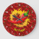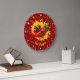Red chili pepper with circle of flame. Red seamless pattern background.
