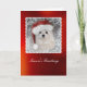 Cette carte de Noël mignonne comporte la perce-neige, un petit chien maltais doux. Elle utilise un casquette de Père Noël et regarde par une fenêtre givrée.