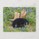 Casquette Cowboy et bottes perdues dans un patch bluebonnet. Jolie carte postale.