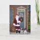 Envoyez vos salutations de vacances avec cette vieille ville Père Noël avec ses aides de chienchien prêtes à livrer des cadeaux. Les chiots font l'image.