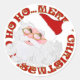 Père Noël Face Circles-Père Noël sport est le chapeau de Père Noël rouge et lunettes de parties scintillant or. Le texte rouge et or tourne autour et dit : Ho Ho Ho, Joyeux Noël ! L'arrière - plan est blanc massif. Cet autocollant Père Noël est disponible avec des couleurs arrière - plans assorties. La coordination des fournitures de la partie Zazzle est disponible.