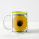 Frühling ist hier und warum man einen wenig Sonnenschein zuhause nicht mit dieser schönen, hell entworfenen Sonnenblume-Tasse holt. Das Bild, das beide Seiten der Tasse schmückt, wird "vervollkommnen" betitelt.