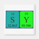 Sie schrieb als S Y (Sulfur Yttrium) auf einen Magneten für den Wissenschaftler in Ihnen. Weitere Periodische Produkte für Tabellennamen finden Sie unter http://mipdatabase.com/products/showptnp.php Finden Sie nicht, was Sie gewollt haben? Dann sagen Sie mir, was Sie auf der Anfrage eine Produktseite wünschen: http://www.mipdatabase.com/products/request.php
