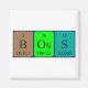 Boss schrieb als B Os S (Boron Osmium Sulfur) auf einen Magneten für den Wissenschaftler in Ihnen. <br />Weitere Periodische Produkte für Tabellennamen finden Sie unter<a href="http://mipdatabase.com/products/">mipdatabase.com</a>! Kannst du nicht finden, was du gewollt hast? Dann sagen Sie mir, was Sie möchten auf der<a href="http://www.mipdatabase.com/products/request.php">Anfrage ein Produkt</a>Seite.