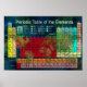 Eine aktualisierte Fassung der Periodischen Tabelle der Elemente mit den neuesten Elementen Copernicium, Flerovium und Livermorium mit einer Weltkarte.