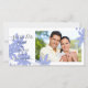 Set den Ton für deine kommenden Nuptials mit der eleganten Periwinkle Blue Daisies Wedding Save the Date Foto Card. Passen Sie es an mit den persönlichen Namen der Braut und des Bräutigams, dem Datum der Ehe und dem persönlichen Bild des Paares. Diese klassische Blütenhochzeit behalte die Fotokarte des Datums mit blauen Blume, die die Ecken mit weißem Hintergrund schmücken.