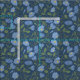 Dieser gemusterte Stoff mit Blumenmuster zeigt die farbenfrohen Blume mit grünen Blätter Set vor marineblauem Hintergrund.