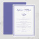 Das einfache, minimalistische und elegante Wedding Menu besticht durch ein zeitgenössisches Design mit einem Doppelrahmen in trendigem Perwinkle blau in einem schicken weißen Hintergrund. Traditionelle Formulierungen bieten zeitlose, aber moderne Eleganz. Personalisieren Sie das Hochzeitsdesign mit Ihren Menüdetails in weißer Schrift und Schrift. Die Rückseite der Karte passt gut zu einem massiven, passenden Perwinkelblau.