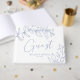 Periwinkle Blume Hochzeit Gästebuch. Sehen Sie sich die komplette Kollektion in unserem Geschäft an.