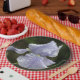 Periwinkle Iris-Blume mit Raindrops Pappteller