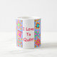 Quilt Art basiert auf originaler Kunst und bietet beliebte Patchwork-Quiltblöcke sowie einzigartige Blöcke, die von Phyllis Dobbs in lebhaften und dynamischen Farben erstellt wurden. Zeigen Sie Ihre Liebe, mit diesen Designs zu quiltieren, während Sie Ihr Lieblingsgetränk in dieser Tasse trinken. Vollständig anpassbar.