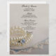 Das Abendessen wird auf der eleganten Verlobungsfeier, dem Brautparty Mittag- oder Hochzeitsessen mit den hübschen Weißen Perlen, dem Diamanten Ring und dem Blue Lace Wedding Menu serviert. Personalisieren Sie es mit den Namen der Braut und des Bräutigams, Ort, Datum und Mahlzeit Details. Dieses edle Hochzeitsmenü bietet ein Foto einer Perlenhalskette und einen Diamantenring mit Vintagem blau-weiß lackiertem Leinentaschentuch.