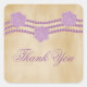 Elegante und raffinierte Perlen und Blume Wedding Dankeschön Sticker mit einem dreifachen Strang von lila Perlen, ein Trio von delikaten Lavendel Blume, und einem antiken strukturierten bräunlichen Hintergrund. Dieses schöne Design ist perfekt für jede Blumenhochzeit. Passen Sie diese hübschen Aufkleber mit Ihrem eigenen Text an, z.B. die Einzelheiten Ihrer Hochzeit.