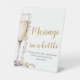 Perlen und Prosecco-Nachricht in einem Flaschensig Sockelschild
